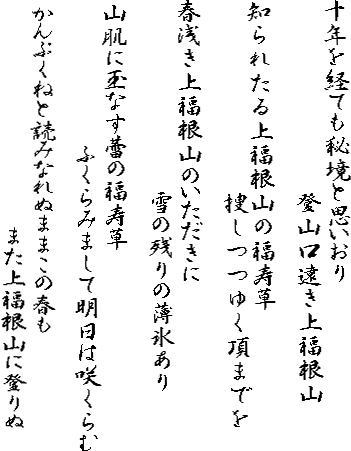 2004.2.12・・・・2002年に行った上福根山のフクジュソウを詠んだ歌です。